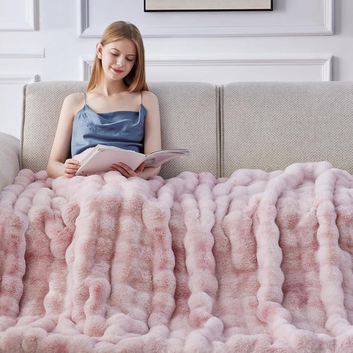 You will love the sensation! This throw features a luxurious 1000GSM weight, combining 700GSM ultra-soft faux rabbit fur with a cozy 300GSM facecloth backing. It offers the perfect balance of cloud-like softness and substantial warmth, making it unmatched for snuggling up on the couch or adding texture to your bed.