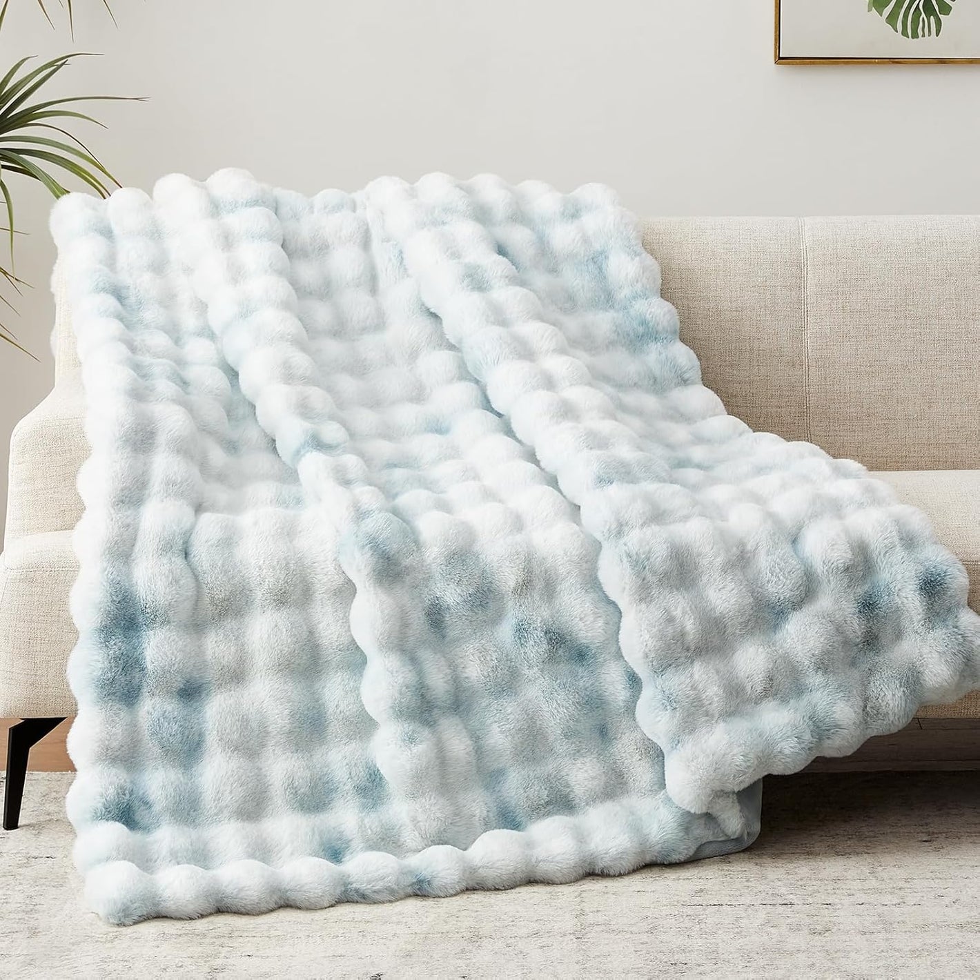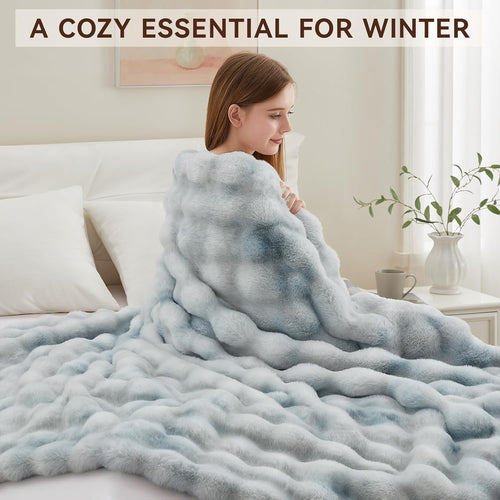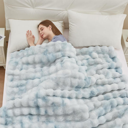 Definitely! With its unique bubble high-low wave pattern and elegant tie-dye blue finish, this throw acts as a sophisticated statement piece. Whether you drape it over a sofa, accent chair, or the foot of your bed, it effortlessly elevates your interior design while providing a warm, inviting atmosphere.